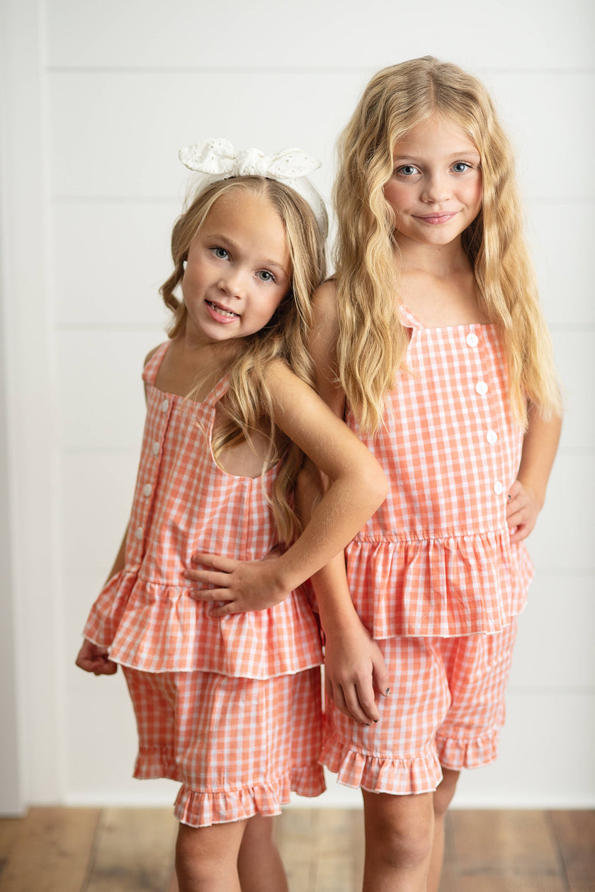 Wren & James - Kids Lavender Ruffle Top & Pastel Stripe Spring Short Set