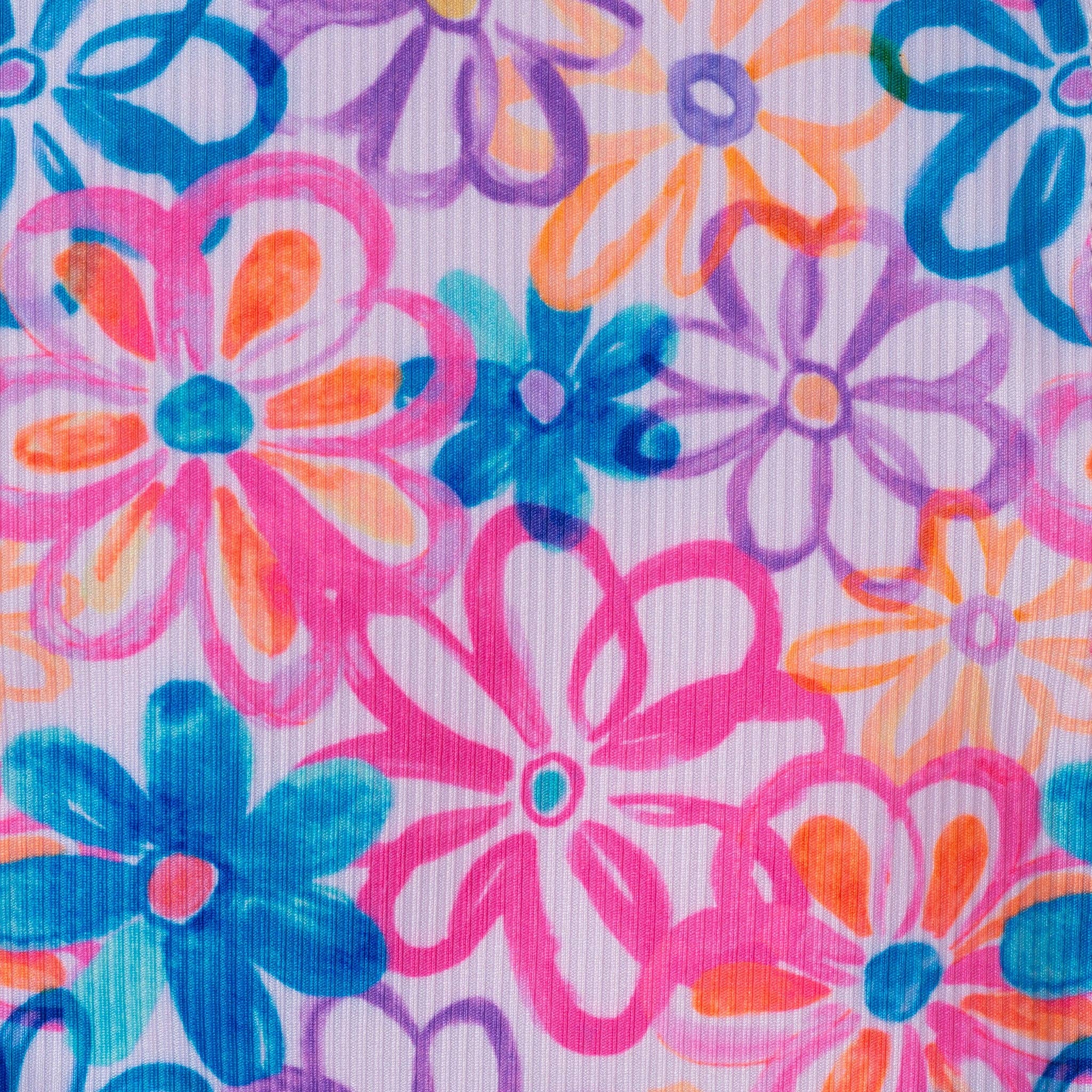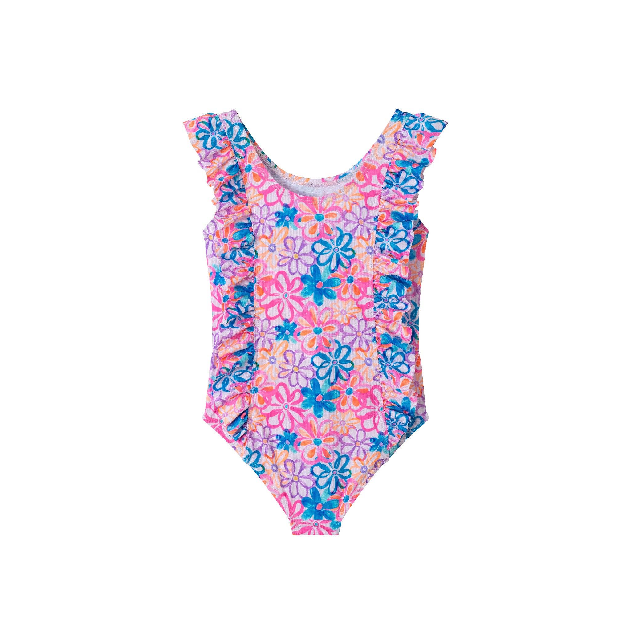 Brighten up her swim days with this fun and floral one-piece swimsuit! Featuring vibrant colors, playful ruffle details, and a comfortable fit, this suit is perfect for splashing in style. Designed for active adventures and sunny days, it’s as durable as it is adorable!