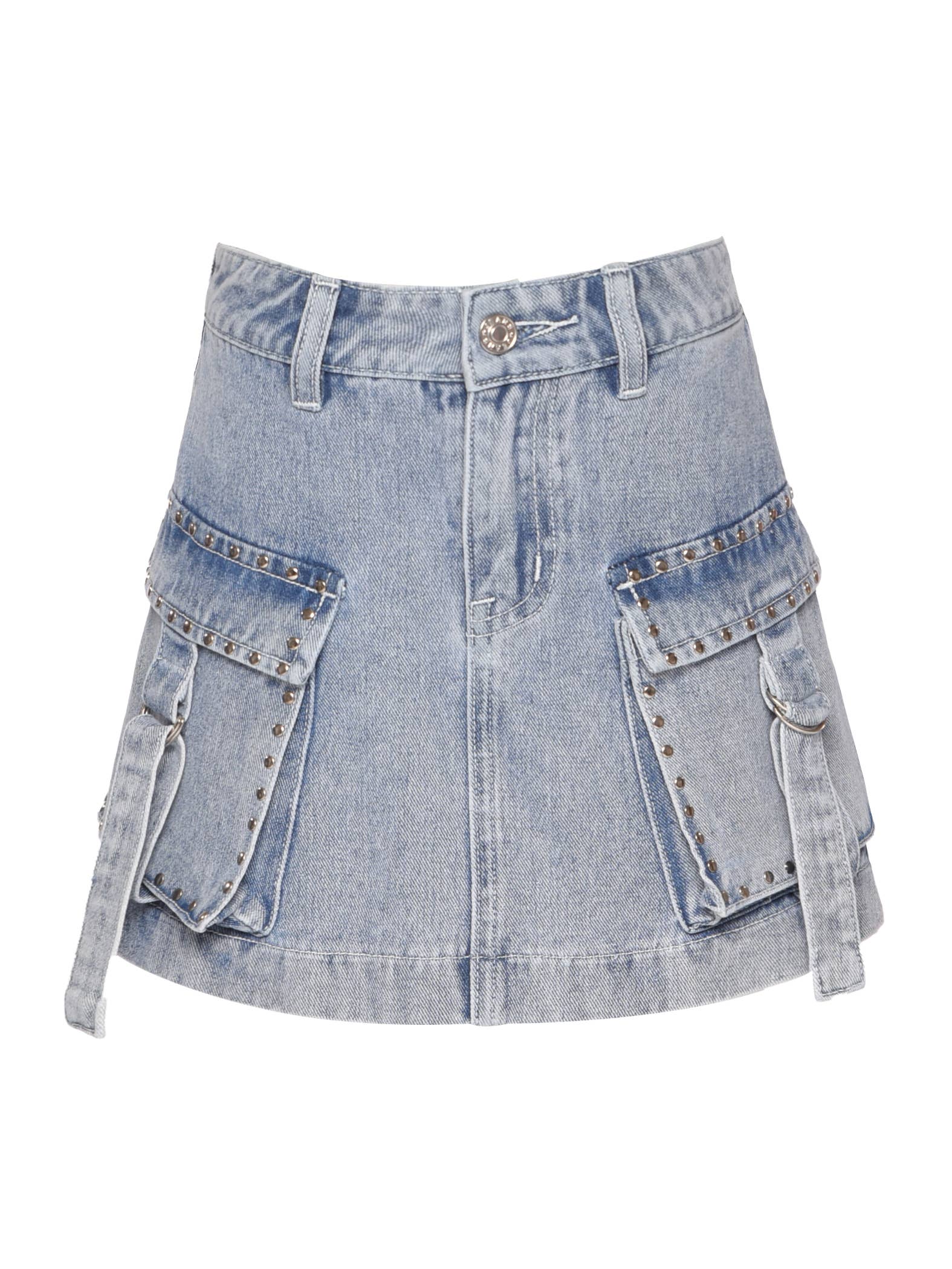 Hannah Banana - DENIM MINI SKIRT WITH STUDDED CARGO POCKETS: STONEWASH / 4