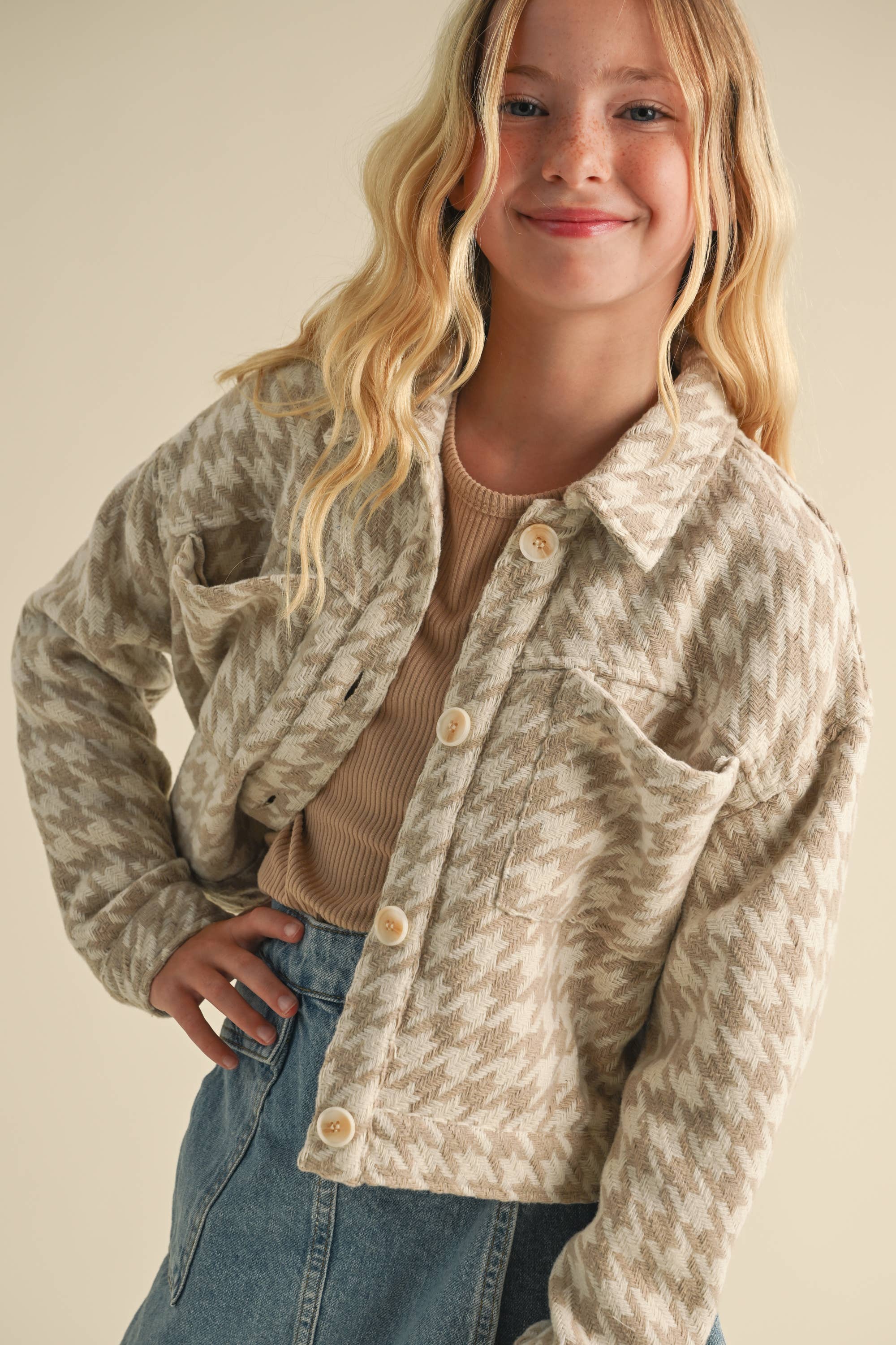 TWEEN KIDS GIRLS CROPPED TRUCKET JACKET IN HOUNDSTOOTH