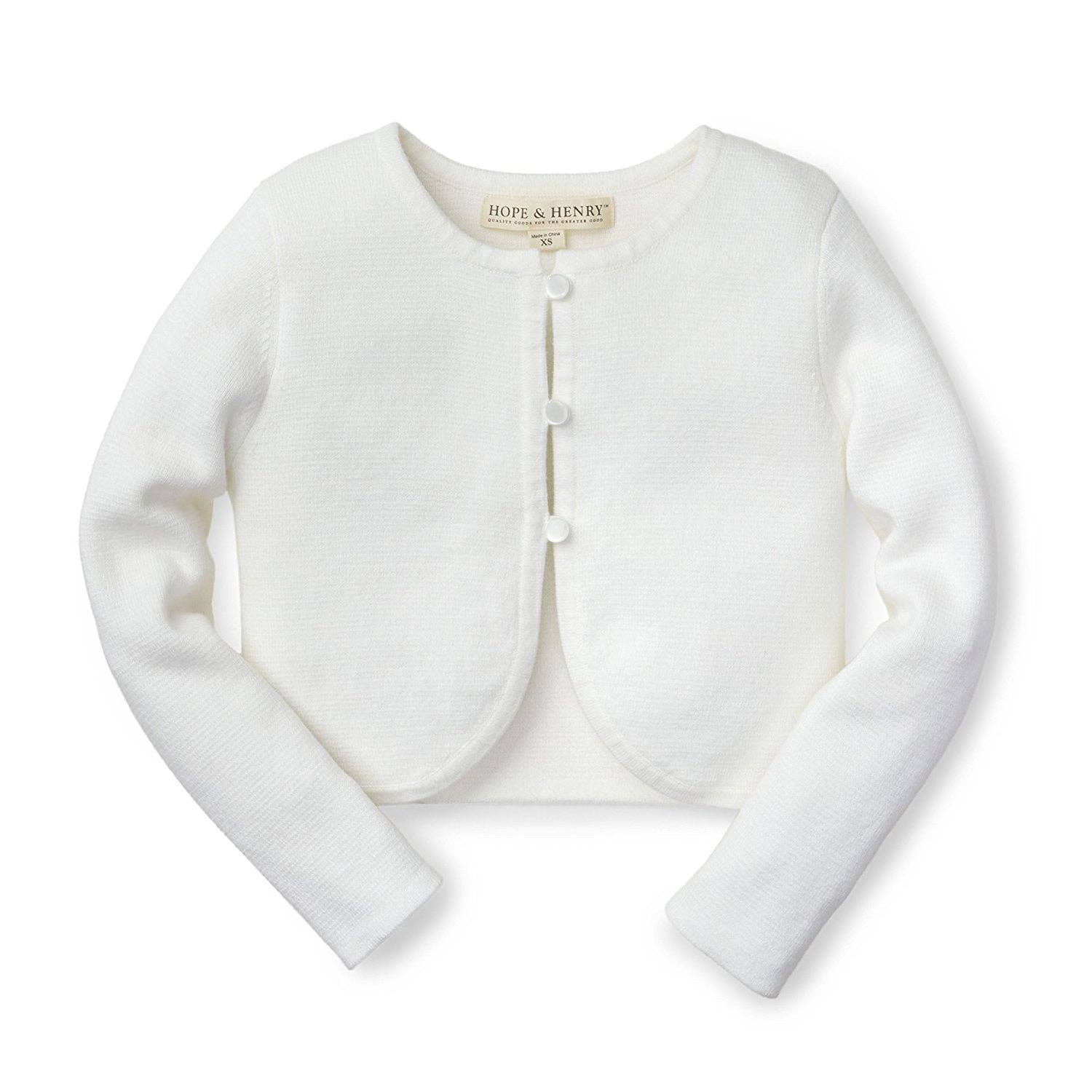 Hope and Henry - Cropped Curved Hem Cardigan: White
