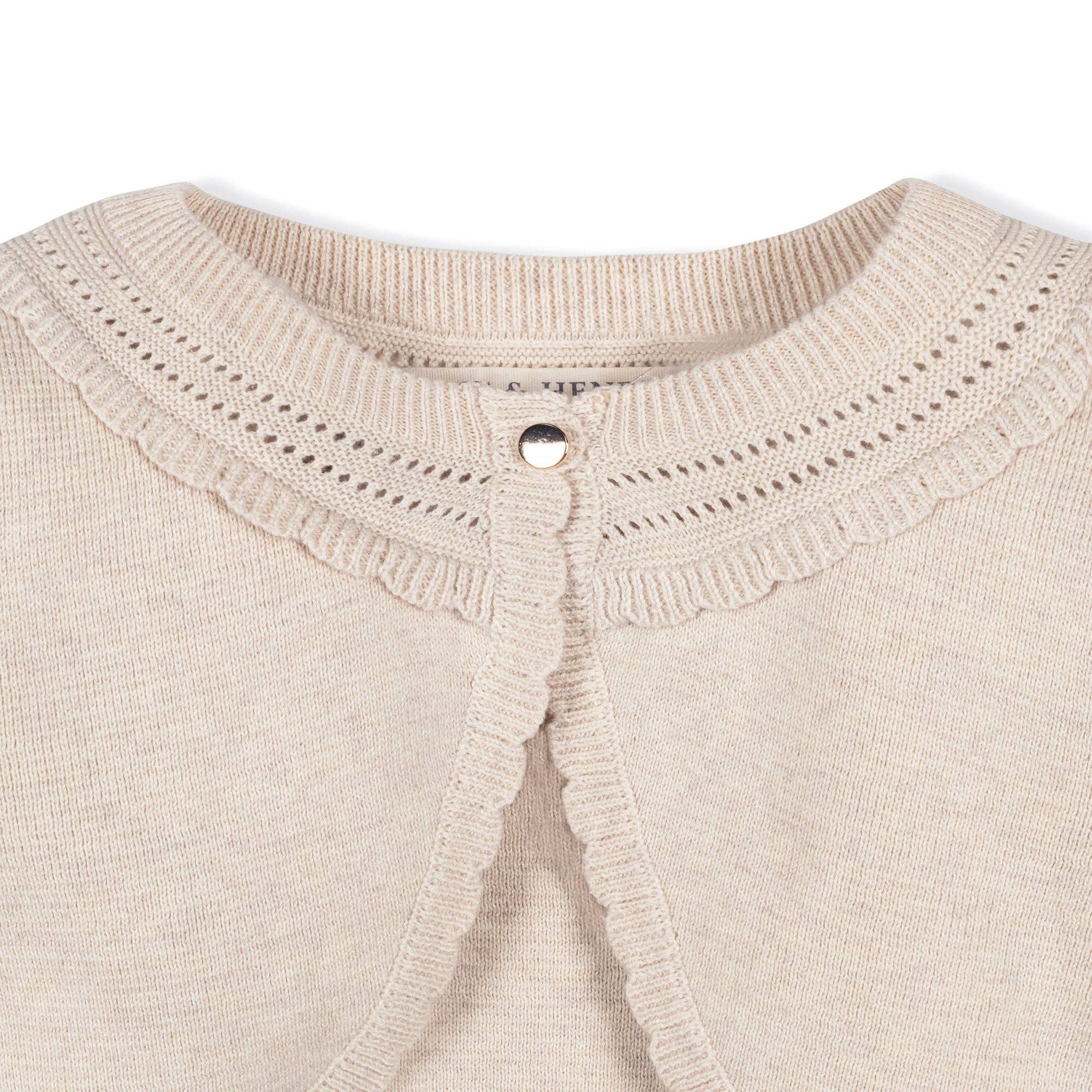 Hope and Henry - Organic Cropped Special Cardigan: Light Oatmeal Scallop