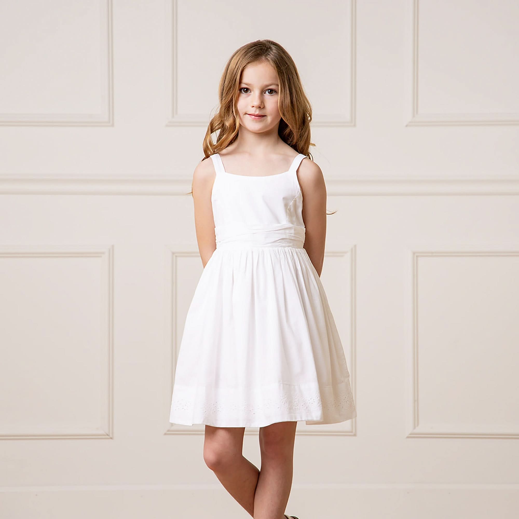 Hope and Henry - Organic Special Sundress with Embroidered Hem: White