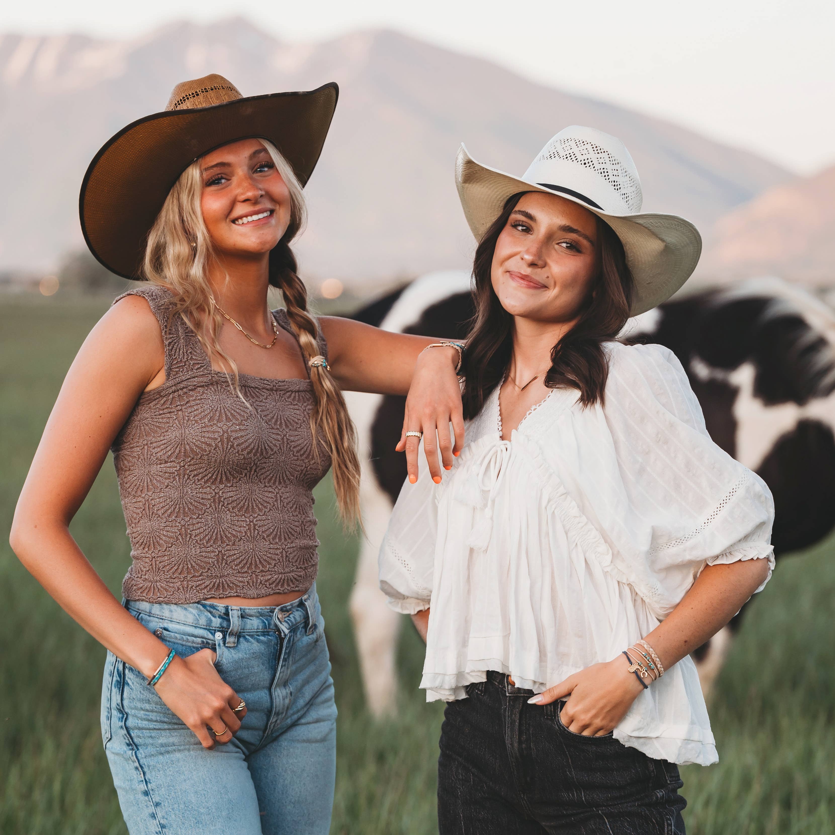 Our Stride set includes five bracelets that double as hair ties in the cutest coastal cowgirl colors of blue, brown, cream and teal. This set features dainty boot and horseshoe gold charms that will remind you to lengthen your stride and cowgirl up.