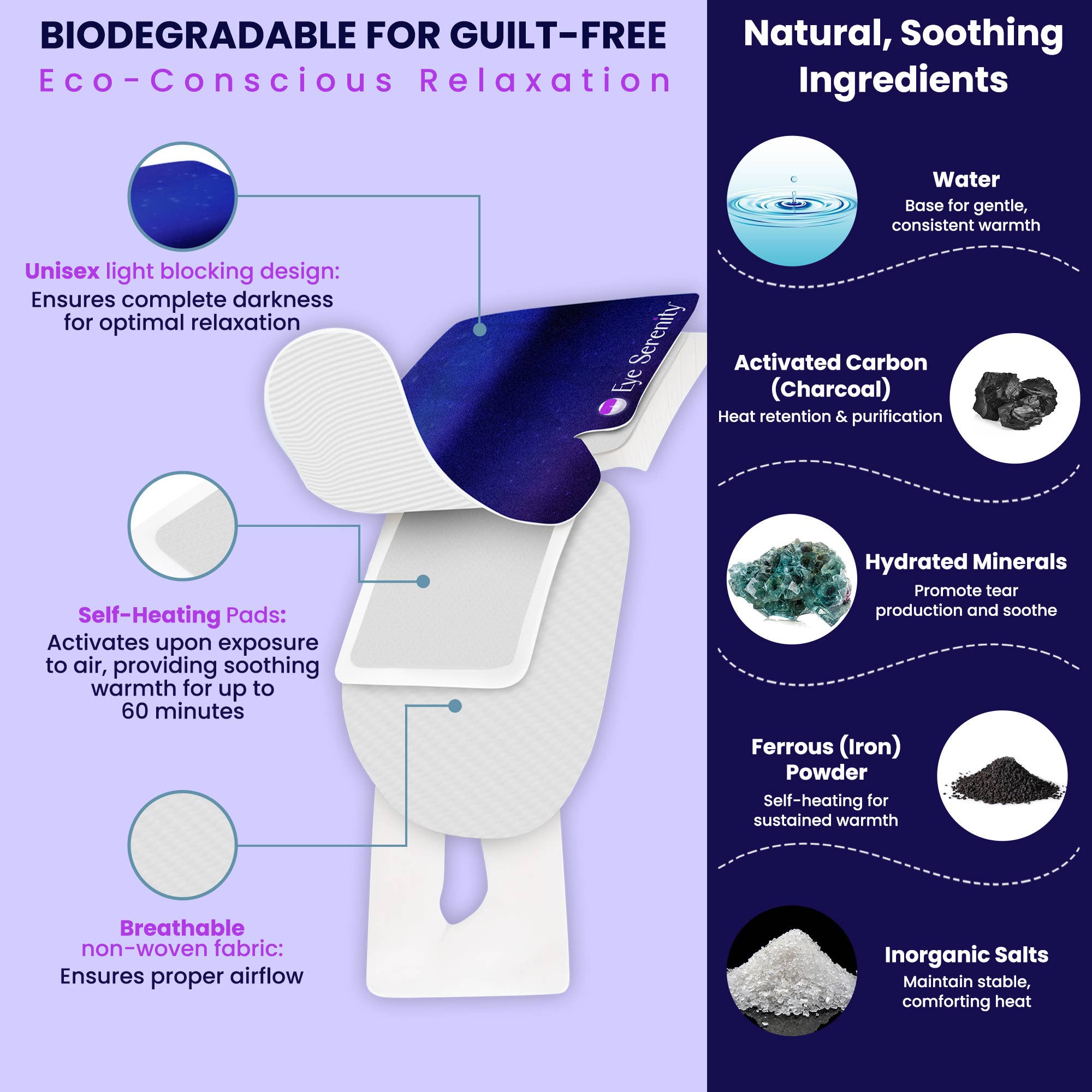 SELF HEATING WARM COMPRESS FOR EYES: Provides fast relief. No cords, no microwave, no fuss. Up to 60 minutes of soothing warmth. Formulated with minerals to relieve eye redness, irritation, itching, blur