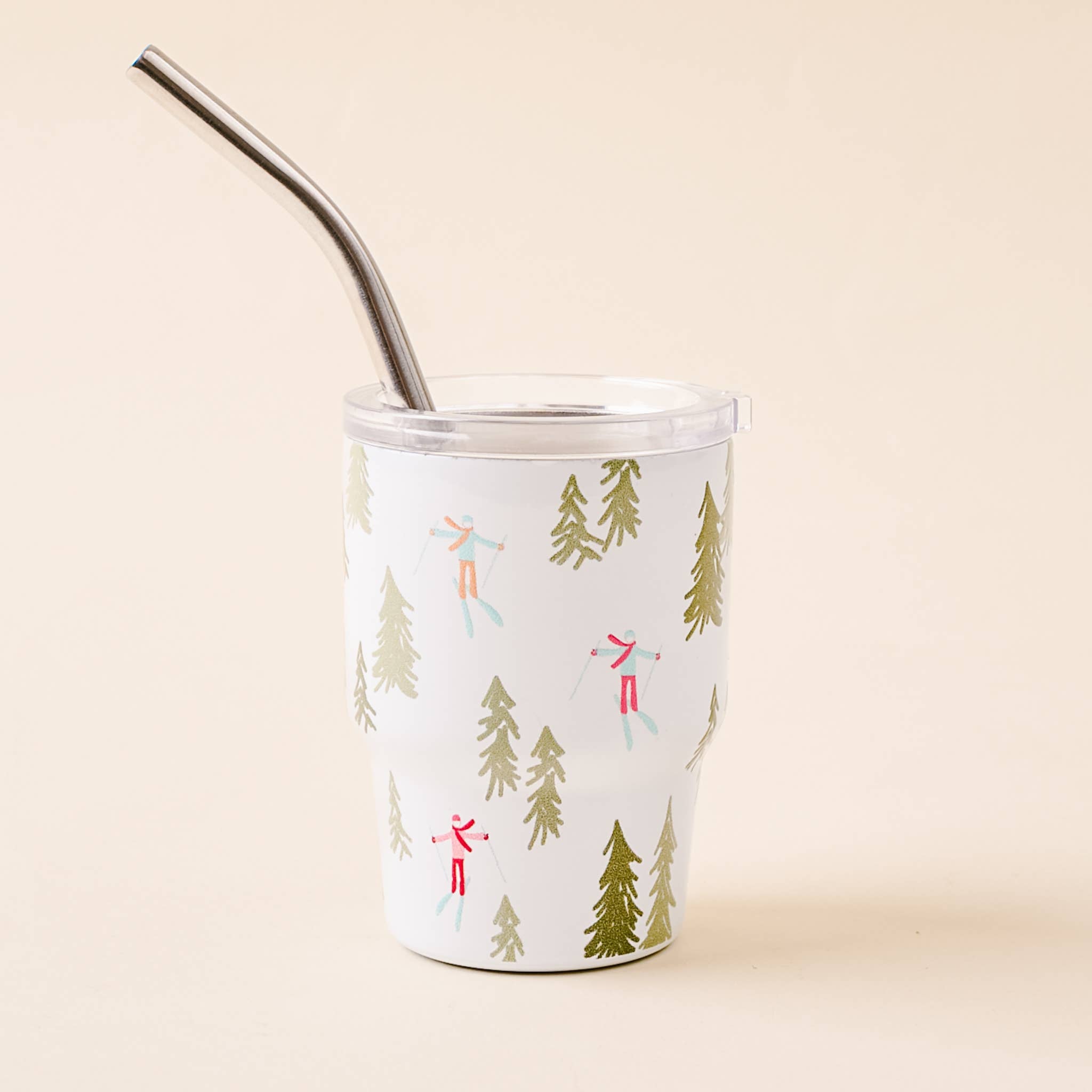 Your favorite tumbler — but mini and ready for the slopes! Complete with a convenient plastic lid and straw, these tiny tumblers come in cozy, mountain-inspired prints. Perfect for espresso shots to warm you up after a day on the snow, or for a quick wellness boost to keep you feeling your best.